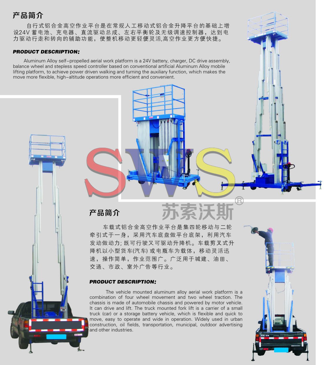 升降桅柱全部用用高強度鋁合金型材,整機重量輕,移動十分方便。