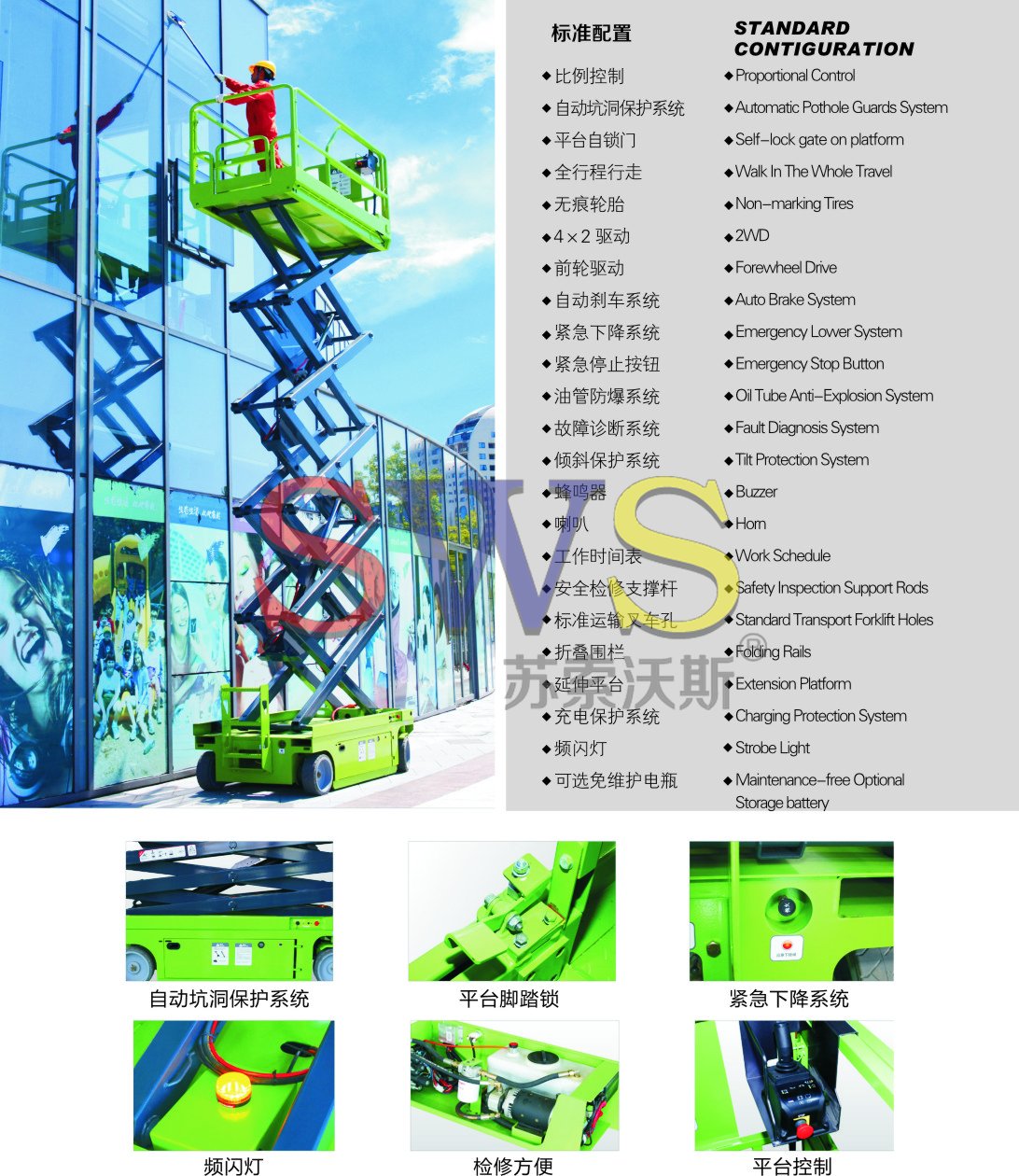 10、調(diào)節(jié)支撐腿,可保升降時(shí)水平,安全可靠